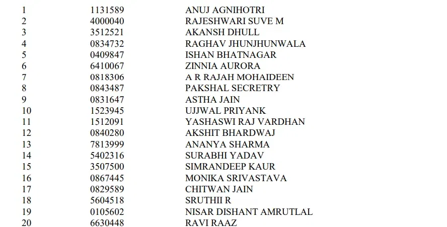 ਅਨੁਜ, ਰਾਜੇਸ਼ਵਰੀ ਅਤੇ ਆਕਾਂਸ਼ ਤੋਂ ਇਲਾਵਾ, ਸਿਵਲ ਸੇਵਾਵਾਂ ਪ੍ਰੀਖਿਆ ਵਿੱਚ ਚੋਟੀ ਦੇ 10 ਉਮੀਦਵਾਰਾਂ ਵਿੱਚ ਰਾਘਵ ਝੁਨਝੁਨਵਾਲਾ, ਈਸ਼ਾਨ ਭਟਨਾਗਰ, ਜੀਨੀਆ ਅਰੋੜਾ, ਏ.ਆਰ. ਰਾਜਾ ਮੁਹੰਮਦੀਨ, ਪਕਸ਼ਾਲ ਸਕੱਤਰ, ਆਸਥਾ ਜੈਨ ਅਤੇ ਉੱਜਵਲ ਪ੍ਰਿਯਾਂਕ ਸ਼ਾਮਲ ਹਨ।