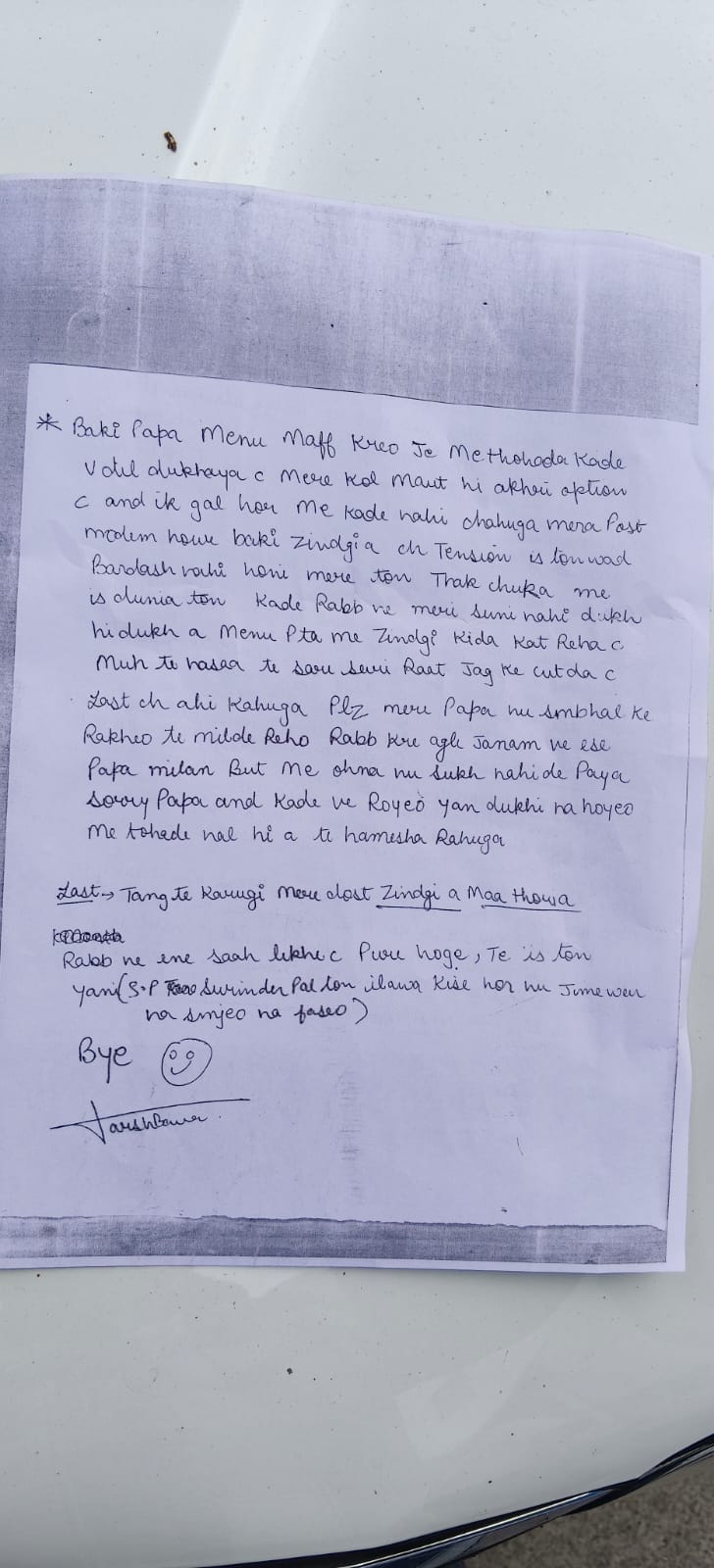 ਡੀਸੀਪੀ ਜਸਕਿਰਨਜੀਤ ਸਿੰਘ ਤੇਜਾ ਨੇ ਦੱਸਿਆ ਕਿ ਸੁਸਾਈਡ ਨੋਟ ਵਿੱਚ ਕਈ ਲੋਕਾਂ ਦੇ ਨਾਮ ਲਿੱਖੇ ਹਨ। ਕਿਸੇ ਵੀ ਪੁਲਿਸ ਅਧਿਕਾਰੀ ਦਾ ਨਾਮ ਨਹੀਂ ਹੈ। ਬਾਕੀ ਜਾਂਚ ਅਧਿਕਾਰੀ ਮਾਮਲੇ ਦੀ ਡੁੰਘਾਈ ਨਾਲ ਘੋਖ ਕਰ ਰਹੇ ਹਨ।