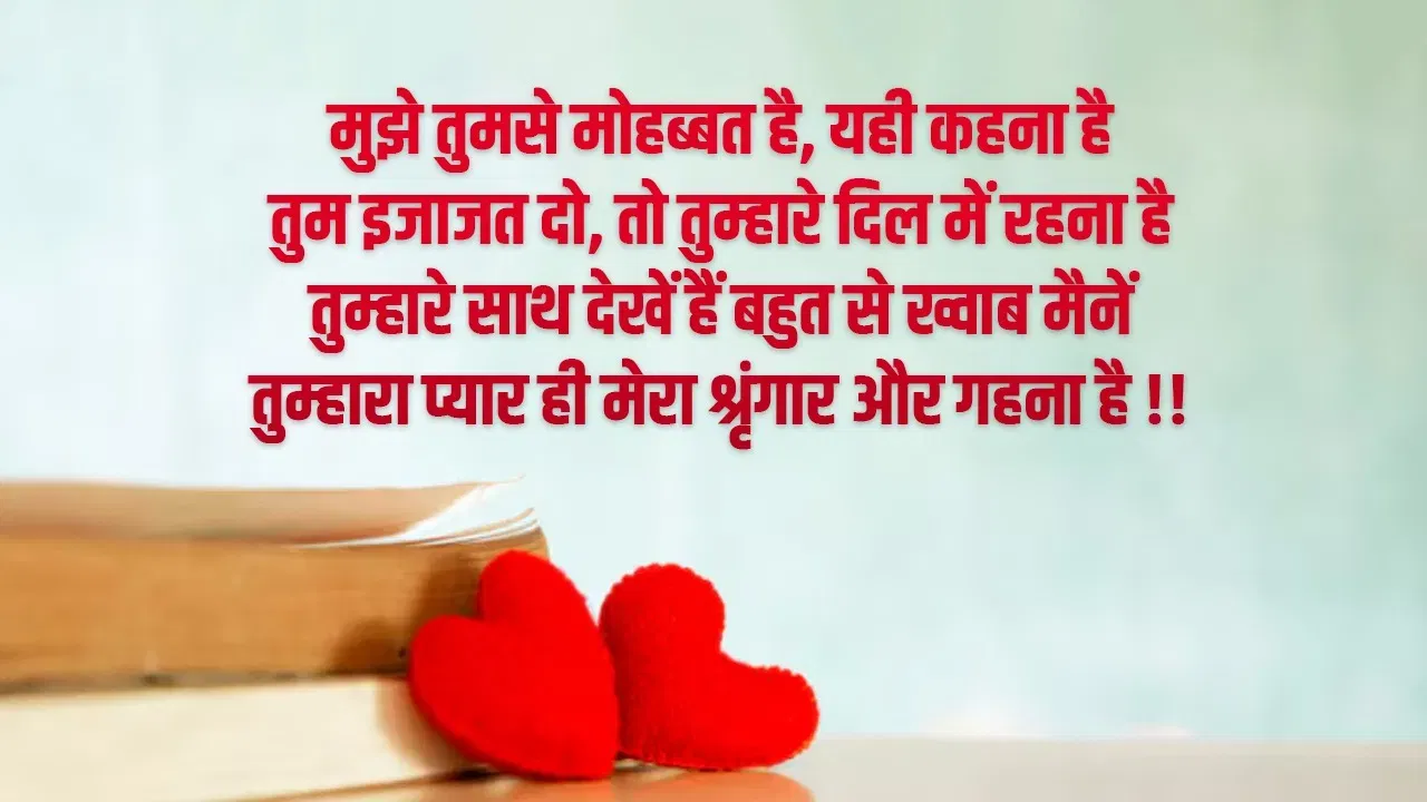 मुझे तुमसे मोहब्बत है, यही कहना है तुम इजाजत दो, तो तुम्हारे दिल में रहना है तुम्हारे साथ देखें हैं बहुत से ख्वाब मैनें तुम्हारा प्यार ही मेरा श्रृंगार और गहना है !!