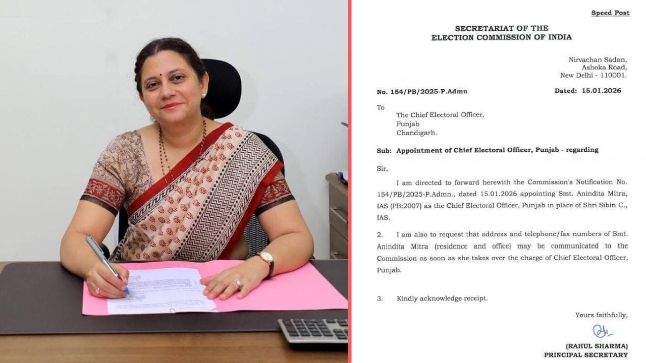 ਅਨਿੰਦਿਤਾ ਮਿੱਤਰਾ ਪੰਜਾਬ ਦੀ ਨਵੀਂ ਮੁੱਖ ਚੋਣ ਅਧਿਕਾਰੀ ਬਣੀ, ਚੰਡੀਗੜ੍ਹ ਨਗਰ ਨਿਗਮ ਦੀ ਰਿਹ ਚੁਕੀ ਹੈ ਸਾਬਕਾ ਕਮਿਸ਼ਨਰ