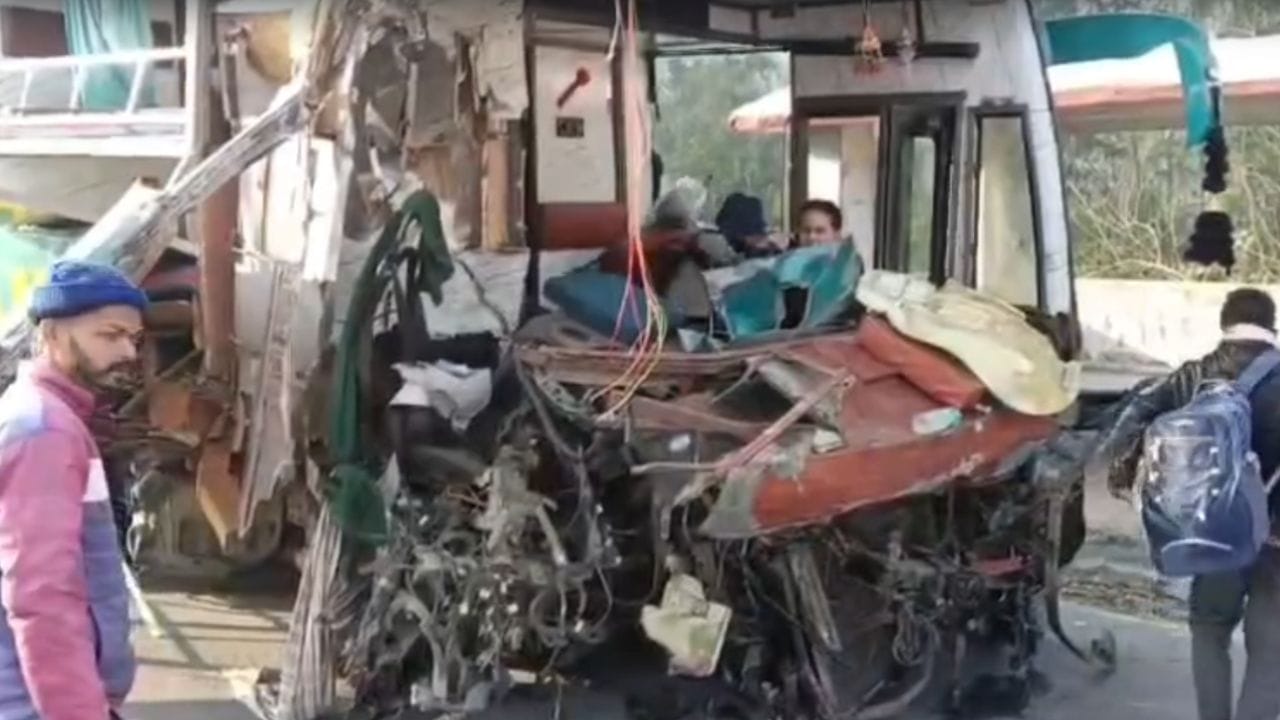 ਹੁਸ਼ਿਆਰਪੁਰ ਦੇ ਦਸੂਹਾ ਵਿੱਚ ਜਲੰਧਰ-ਜੰਮੂ ਨੈਸ਼ਨਲ ਹਾਈਵੇਅ ‘ਤੇ ਇੱਕ ਦਰਦਨਾਕ ਸੜਕ ਹਾਦਸਾ ਵਾਪਰਨ ਦੀ ਖ਼ਬਰ ਸਾਹਮਣੇ ਆਈ ਹੈ। ਇੱਥੇ ਉੱਚੀ ਬੱਸੀ ਨੇੜੇ ਇੱਕ ਡਬਲ ਡੈਕਰ ਟੂਰਿਸਟ ਬੱਸ ਅਤੇ ਲੱਕੜਾਂ ਨਾਲ ਲੱਦੇ ਟਰੱਕ ਵਿਚਾਲੇ ਹੋਈ ਭਿਆਨਕ ਟੱਕਰ ਵਿੱਚ ਬੱਸ ਦੇ ਪਰਖੱਚੇ ਉੱਡ ਗਏ। ਇਹ ਟੱਕਰ ਇੰਨੀ ਜ਼ਬਰਦਸਤ ਸੀ ਕਿ ਬੱਸ ਦੇ ਅਗਲੇ ਪਹੀਏ ਨਿਕਲ ਕੇ ਦੂਰ ਜਾ ਡਿੱਗੇ ਅਤੇ ਬੱਸ ਹਾਈਵੇਅ ਦੀ ਰੇਲਿੰਗ ‘ਤੇ ਚੜ੍ਹ ਗਈ। ਇਸ ਹਾਦਸੇ ਵਿੱਚ ਬੱਸ ਡਰਾਈਵਰ ਦੀਆਂ ਦੋਵੇਂ ਲੱਤਾਂ ਟੁੱਟ ਗਈਆਂ ਅਤੇ ਉਹ ਕੈਬਿਨ ਵਿੱਚ ਬੁਰੀ ਤਰ੍ਹਾਂ ਫਸ ਗਿਆ, ਜਿਸ ਨੂੰ ਕਰੀਬ 2 ਘੰਟੇ ਦੀ ਮੁਸ਼ੱਕਤ ਤੋਂ ਬਾਅਦ ਕਟਰ ਨਾਲ ਬੱਸ ਦੀ ਬਾਡੀ ਕੱਟ ਕੇ ਬਾਹਰ ਕੱਢਿਆ ਗਿਆ।
