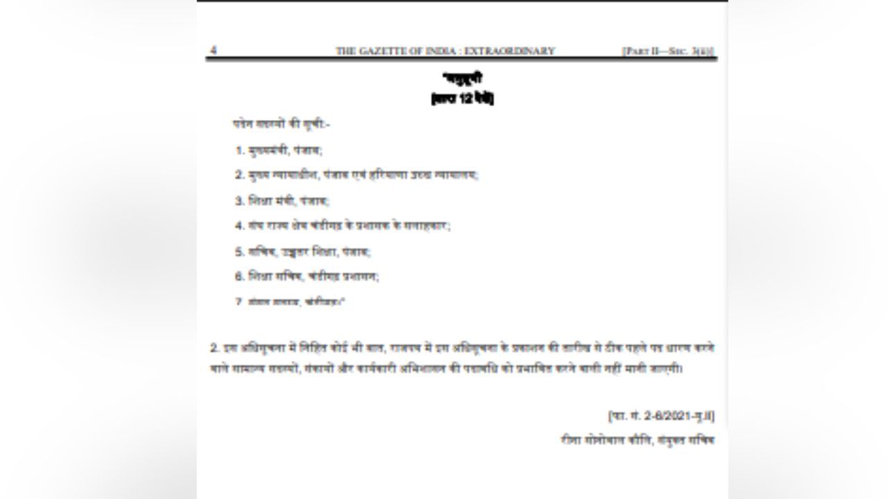 - ਪੰਜਾਬ ਦੇ ਮੁੱਖ ਸਕੱਤਰ ਅਤੇ ਸਿੱਖਿਆ ਸਕੱਤਰ, ਪੰਜਾਬ ਦੇ ਰਾਜਪਾਲ ਦੁਆਰਾ ਨਾਮਜ਼ਦ ਕੀਤੇ ਗਏ ਦੋ ਵਿਧਾਇਕ, ਅਤੇ ਚੰਡੀਗੜ੍ਹ ਦੇ ਤਿੰਨ ਅਧਿਕਾਰੀ – ਸਲਾਹਕਾਰ, ਮੁੱਖ ਸਕੱਤਰ ਅਤੇ ਸਿੱਖਿਆ ਸਕੱਤਰ – ਮੈਂਬਰ ਹੋਣਗੇ।