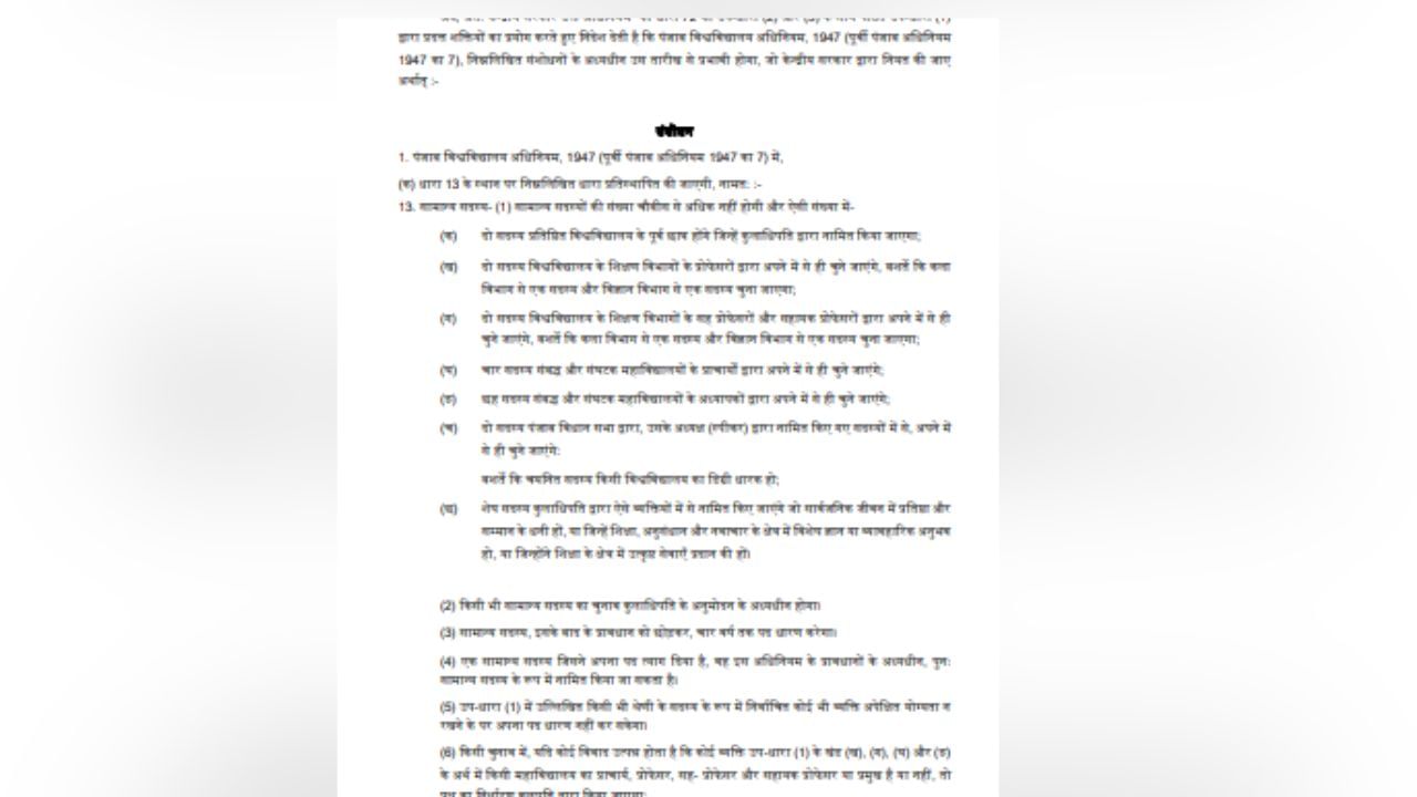 - ਪੂਰਬੀ ਪੰਜਾਬ ਯੂਨੀਵਰਸਿਟੀ ਐਕਟ, 1947 ਦੀ ਧਾਰਾ 14(7) ਦੇ ਤਹਿਤ ਕੀਤੇ ਗਏ ਇਨ੍ਹਾਂ ਵੱਡੇ ਬਦਲਾਅ ਤੋਂ ਬਾਅਦ ਚੋਣ ਪ੍ਰਣਾਲੀ ਨੂੰ ਖਤਮ ਕਰ ਦਿੱਤੀ ਗਈ ਹੈ। ਹੁਣ ਮੈਂਬਰ ਪੂਰੀ ਤਰ੍ਹਾਂ ਨਾਮਜ਼ਦ ਕੀਤੇ ਜਾਣਗੇ।