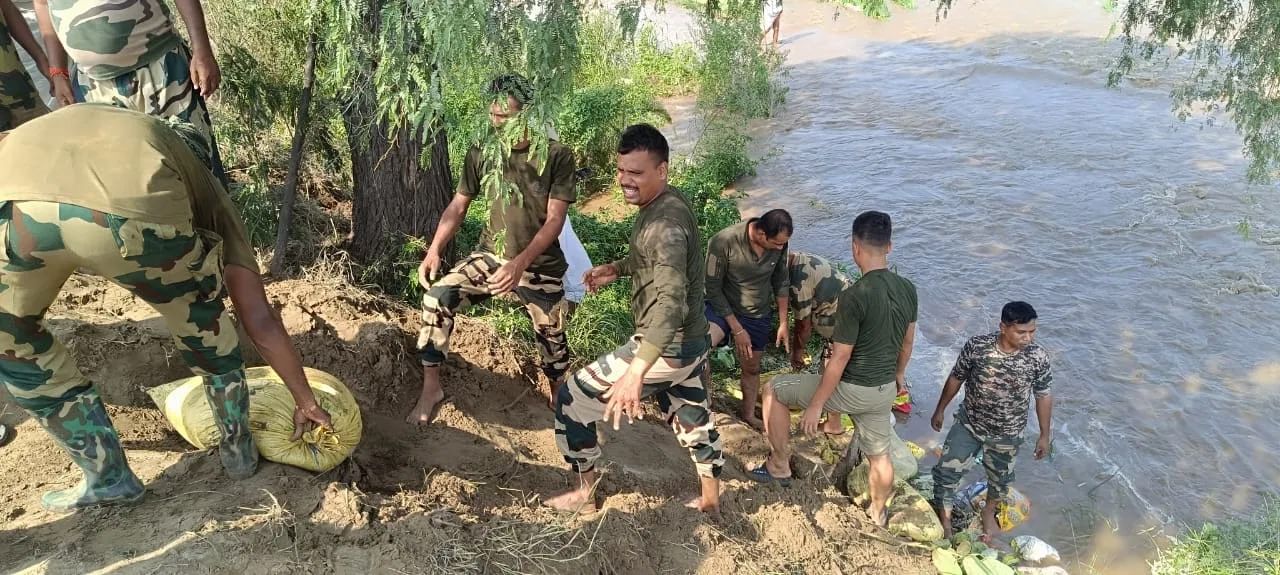 ਬੀਐਸਐਫ ਨੇ ਫਿਰੋਜ਼ਪੁਰ ਵਿੱਚ ਹੜ੍ਹ-ਰੋਧਕ ਬੰਨ੍ਹ ਨੂੰ ਮਜ਼ਬੂਤ ਕਰਨ ਲਈ ਪਚਰੀਆਂ, ਪ੍ਰੀਤਮ ਸਿੰਘ ਵਾਲਾ ਅਤੇ ਕਮਾਲਵਾਲਾ ਪਿੰਡਾਂ ਦੇ ਸਥਾਨਕ ਲੋਕਾਂ ਨਾਲ ਵੀ ਕੰਮ ਕੀਤਾ। ਤਰਨ ਤਾਰਨ ਵਿੱਚ, ਬੀਐਸਐਫ ਨੇ ਮੀਆਂਵਾਲੀ ਦੇ ਪਿੰਡ ਵਾਸੀਆਂ ਨਾਲ ਮਿਲ ਕੇ ਰਾਤ ਭਰ ਟੁੱਟੇ ਹੜ੍ਹ-ਰੋਧਕ ਬੰਨ੍ਹ ਨੂੰ ਬੰਦ ਕਰ ਦਿੱਤਾ, ਜਿਸ ਨਾਲ ਹੋਰ ਤਬਾਹੀ ਟਲ ਗਈ।