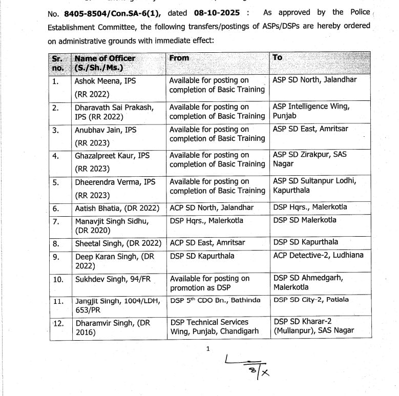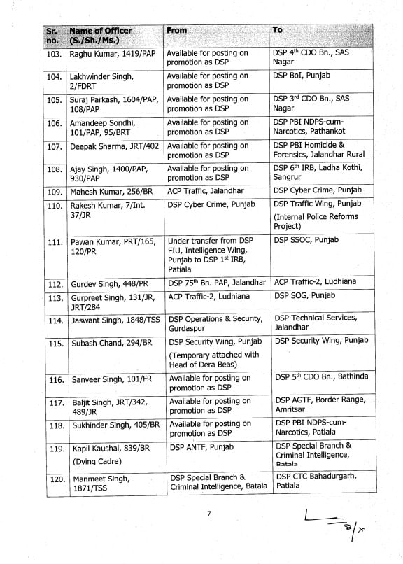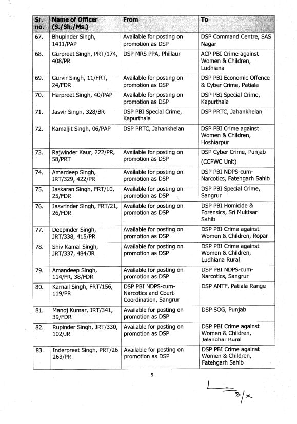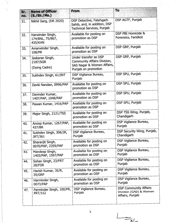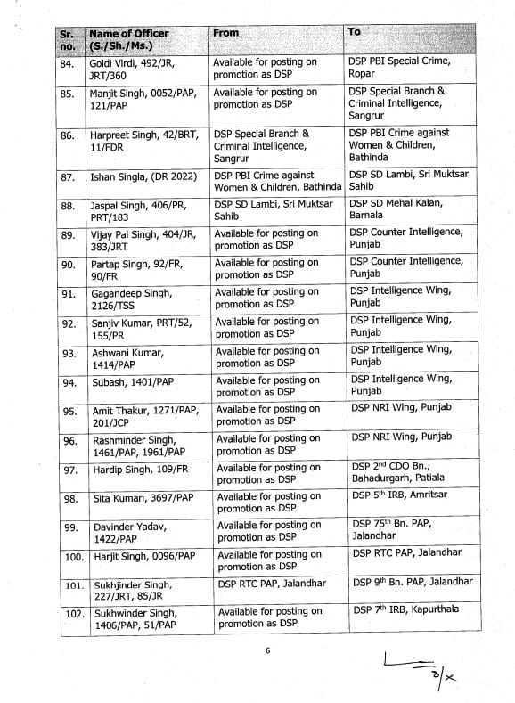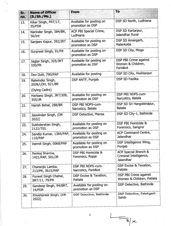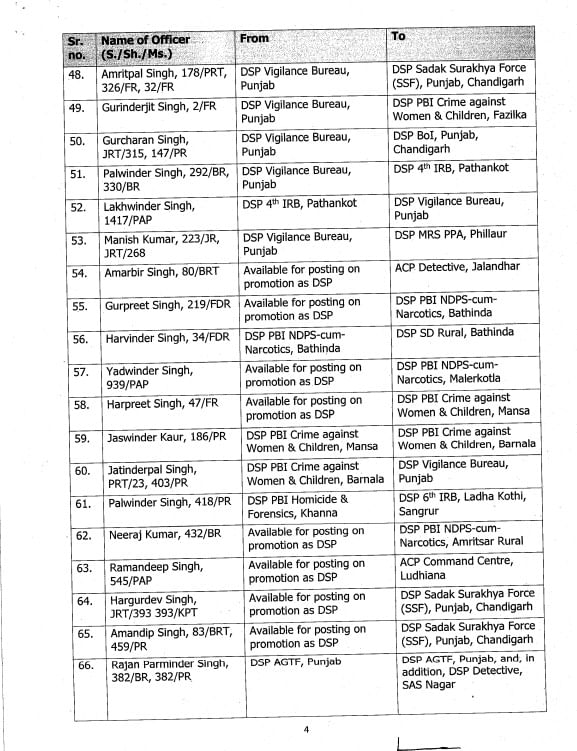 ਨਿਯੁਕਤ ਕੀਤੇ ਗਏ ਅਧਿਕਾਰੀ ਲੰਬੇ ਸਮੇਂ ਤੋਂ ਪੋਸਟਿੰਗ ਦੀ ਉਡੀਕ ਕਰ ਰਹੇ ਸਨ। ਉਨ੍ਹਾਂ ਨੂੰ ਵਿਜੀਲੈਂਸ ਬਿਊਰੋ ਅਤੇ ਰੋਡ ਸੇਫਟੀ ਫੋਰਸ ਸਮੇਤ ਵੱਖ-ਵੱਖ ਵਿੰਗਾਂ ਵਿੱਚ ਤਾਇਨਾਤ ਕੀਤਾ ਗਿਆ ਸੀ।