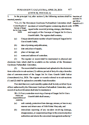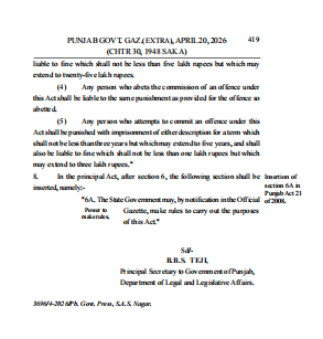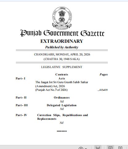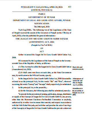 ਬੇਅਦਬੀ ਖਿਲਾਫ ਪਾਸ ਹੋਏ ਬਿੱਲ ਦਾ ਨੋਟੀਫਿਕੇਸ਼ਨ ਜਾਰੀ, ਗਵਰਨਰ ਤੋਂ ਮਿਲੀ ਮਨਜ਼ੂਰੀ
