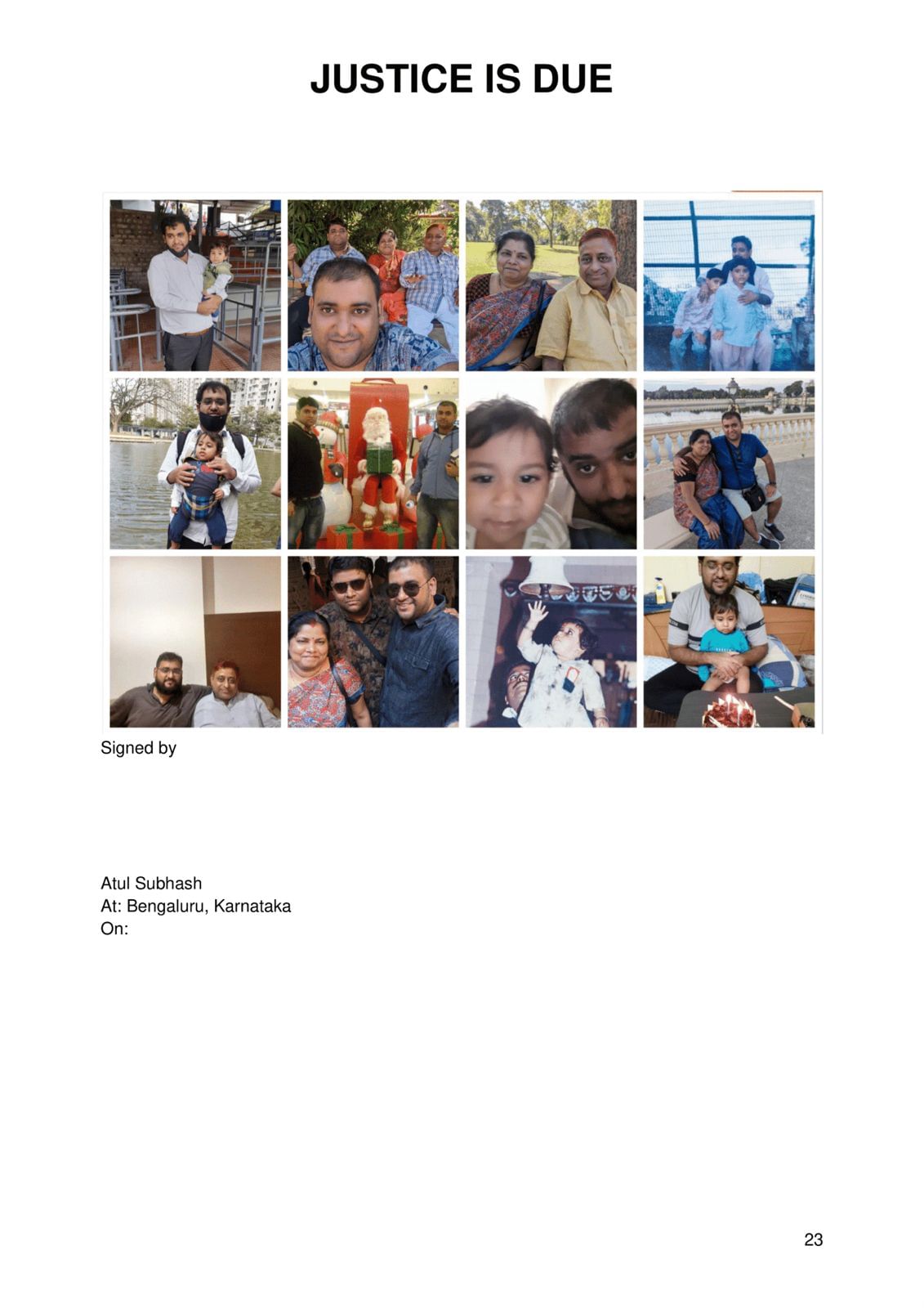 ਅਤੁਲ ਨੇ ਇਕ ਮਹੀਨਾ ਪਹਿਲਾਂ ਹੀ ਖੁਦਕੁਸ਼ੀ ਦੀ ਤਿਆਰੀ ਕਰ ਲਈ ਸੀ। ਇਸ ਦੇ ਲਈ ਉਨ੍ਹਾਂ ਨੇ ਤਿੰਨ ਕਾਲਮ ਦੀ ਚੈਕਲਿਸਟ ਬਣਾਈ ਸੀ। ਇਹ ਚੈਕਲਿਸਟ ਉਨ੍ਹਾਂਦੇ ਹਰ ਕੰਮ ਦੀ ਸੀ। ਅਤੁਲ ਨੇ ਇਹ ਚੈਕਲਿਸਟ ਕਮਰੇ ਦੀ ਕੰਧ ‘ਤੇ ਚਿਪਕਾਈ ਸੀ। ਚੈਕਲਿਸਟ ਦੇ ਅੱਗੇ ਇੱਕ ਹੋਰ ਕਾਗਜ਼ ਚਿਪਕਾਇਆ ਗਿਆ ਸੀ ਜਿਸ ‘ਤੇ ਲਿਖਿਆ ਸੀ-ਇਨਸਾਫ਼ ਦਿੱਤਾ ਜਾਣਾ ਚਾਹੀਦਾ ਹੈ। ਇਸ ਚੈਕਲਿਸਟ ਦੇ ਤਿੰਨ ਭਾਗ ਸਨ – ਜੀਵਨ ਦੇ ਆਖਰੀ ਦਿਨ ਤੋਂ ਪਹਿਲਾਂ, ਮੌਤ ਦਾ ਦਿਨ ਅਤੇ ਮੁਕਤੀ ਤੋਂ ਪਹਿਲਾਂ ਦੇ ਕੰਮ।