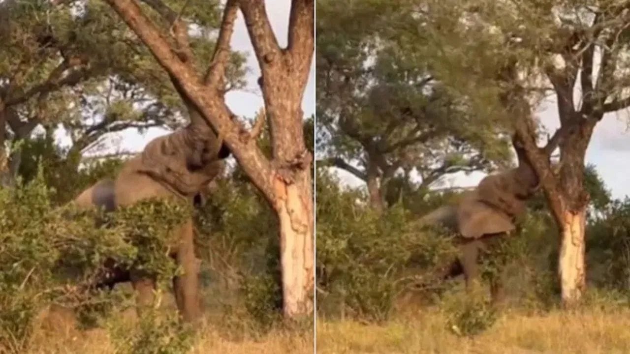 ਵੀਡਿਓ ਵਿੱਚ, ਇਹ ਸਾਫ਼ ਦੇਖਿਆ ਜਾ ਸਕਦਾ ਹੈ ਕਿ ਜੰਗਲ ਵਿੱਚ ਖੜ੍ਹਾ ਇੱਕ ਹਾਥੀ ਇੱਕ ਵੱਡੇ ਅਤੇ ਮਜ਼ਬੂਤ ਦਰੱਖਤ ਦੇ ਨੇੜੇ ਜਾਂਦਾ ਹੈ। ਇਸ ਨੂੰ ਹੇਠਾਂ ਲਿਆਉਣ ਲਈ, ਉਹ ਹੌਲੀ-ਹੌਲੀ ਆਪਣੀ ਸੁੰਡ ਨਾਲ ਦਰੱਖਤ ਨੂੰ ਹਿਲਾਉਂਦਾ ਹੈ, ਇੰਝ ਲਗਦਾ ਹੈ ਜਿਵੇਂ ਉਹ ਆਪਣੀ ਤਾਕਤ ਦੀ ਪਰਖ ਕਰ ਰਿਹਾ ਹੋਵੇ।