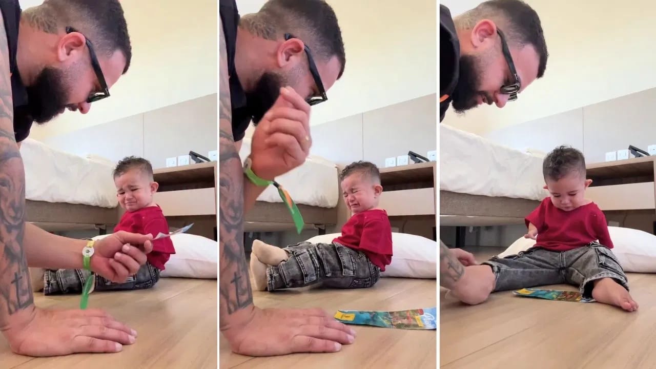 ਇਸ ਵਾਇਰਲ ਵੀਡੀਓ ਵਿੱਚ, ਛੋਟਾ ਬੱਚਾ ਕਾਗਜ਼ ਦਾ ਟੁਕੜਾ ਚੁੱਕਣ ਦੀ ਕੋਸ਼ਿਸ਼ ਕਰਦਾ ਹੈ। ਪਰ ਜਦੋਂ ਉਹ ਆਪਣੀ ਸਰੀਰਕ ਅਪੰਗਤਾ ਕਾਰਨ ਪਹਿਲੀ ਵਾਰ ਸਫਲ ਨਹੀਂ ਹੁੰਦਾ, ਤਾਂ ਉਸਦੀਆਂ ਅੱਖਾਂ ਵਿੱਚ ਹੰਝੂ ਆ ਜਾਂਦੇ ਹਨ। ਬੱਚਾ ਰੋਂਦਾ ਹੈ ਅਤੇ ਹਾਰ ਮੰਨਣ ਲੱਗਦਾ ਹੈ, ਪਰ ਉਸਦੇ ਪਿਤਾ, ਲੂਕਾਸ ਵੈਲੇਰੀਓ (Lucas Valerio) ਹਾਰ ਨਹੀਂ ਮੰਨਦੇ ਹਨ।