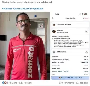 ਜੇ ਡਿਲੀਵਰੀ ਬੁਆਏ ਚਾਹੁੰਦਾ, ਤਾਂ ਉਹ ਸ਼੍ਰੀਪਾਲ ਨੂੰ ਇਸ ਲਈ ਬਿਲਕੁਲ ਇਨਕਾਰ ਕਰ ਸਕਦਾ ਸੀ, ਕਿਉਂਕਿ ਉਹ ਜ਼ੋਮੈਟੋ ਲਈ ਕੰਮ ਕਰਦਾ ਹੈ, ਸਬਵੇਅ ਲਈ ਨਹੀਂ। ਪਰ ਉਸਨੇ ਅਜਿਹਾ ਨਹੀਂ ਕੀਤਾ। ਸ਼੍ਰੀਪਾਲ ਨੇ ਕਿਹਾ ਕਿ ਉਸਨੇ ਕਿਹਾ ਕਿ ਉਹ ਚਾਹੁੰਦਾ ਹੈ ਕਿ ਗਾਹਕ ਖੁਸ਼ ਰਹਿਣ, ਅਤੇ ਇਹ ਉਸਦੀ ਜ਼ਿੰਮੇਵਾਰੀ ਹੈ। ਉਸਨੇ ਅੱਗੇ ਕਿਹਾ, ਡਿਲੀਵਰੀ ਬੁਆਏ ਨੇ ਮੈਨੂੰ ਸਿਰਫ਼ ਇੱਕ ਗਾਹਕ ਵਜੋਂ ਨਹੀਂ ਦੇਖਿਆ, ਸਗੋਂ ਸਹੀ ਕੰਮ ਕਰਨ ਦੀ ਕੀਮਤ ਵੀ ਦੇਖੀ।