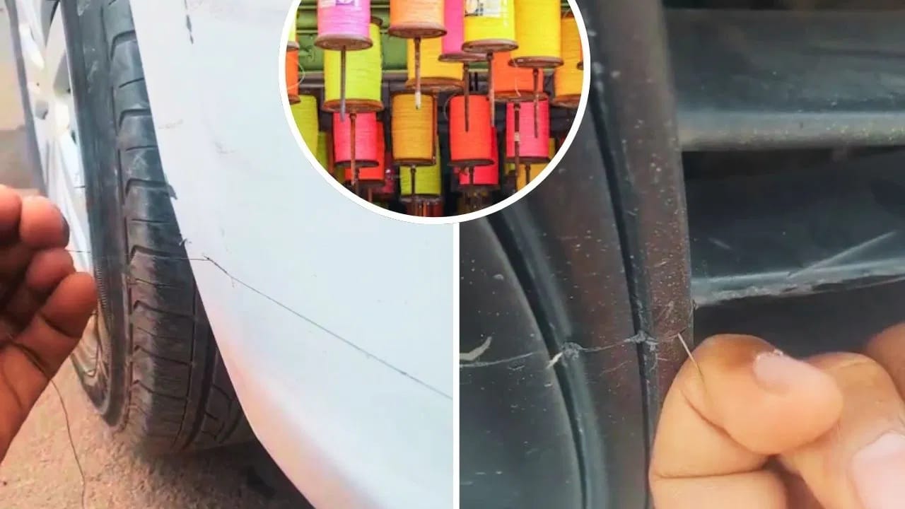 Shocking Video: ਮਕਰ ਸੰਕ੍ਰਾਂਤੀ (Makar Sankranti) ਦੇ ਤਿਊਹਾਰ ਦੌਰਾਨ ਅਸਮਾਨ ਵਿੱਚ ਉੱਡਦੇ ਰੰਗ-ਬਿਰੰਗੇ ਪਤੰਗ ਜਿੰਨੇ ਖੁਸ਼ਨੁਮਾ ਹੁੰਦੇ ਹਨ, ਉਨ੍ਹਾਂ ਦੇ ਪਿੱਛੇ ਲੁਕਿਆ ਚੀਨੀ ਮਾਂਝਾ ਵੀ ਓਨਾ ਹੀ ਘਾਤਕ ਸਾਬਤ ਹੋ ਰਿਹਾ ਹੈ। ਸੋਸ਼ਲ ਮੀਡੀਆ ‘ਤੇ ਵਾਇਰਲ ਹੋ ਰਹੀ ਇੱਕ ਹਾਲੀਆ ਵੀਡੀਓ ਨੇ ਇਸ ਧਾਗੇ ਦੀ ਮਾਰਕ ਸੱਮਰਥਾ ਨਾਲ ਸਾਰਿਆਂ ਨੂੰ ਹੈਰਾਨ ਕਰ ਦਿੱਤਾ ਹੈ। ਵਾਇਰਲ ਕਲਿੱਪ ਦਿਖਾਉਂਦੀ ਹੈ ਕਿ ਕਿਵੇਂ ਇੱਕ ਮਾਮੂਲੀ ਮਾਂਝੇ ਨੇ ਇੱਕ ਕਾਰ ਦੇ ਮਜ਼ਬੂਤ ਫਾਈਬਰ ਬੰਪਰ ਨੂੰ ਇੱਕ ਤਿੱਖੇ ਬਲੇਡ ਵਾਂਗ ਕੱਟ ਦਿੱਤਾ ਹੈ।