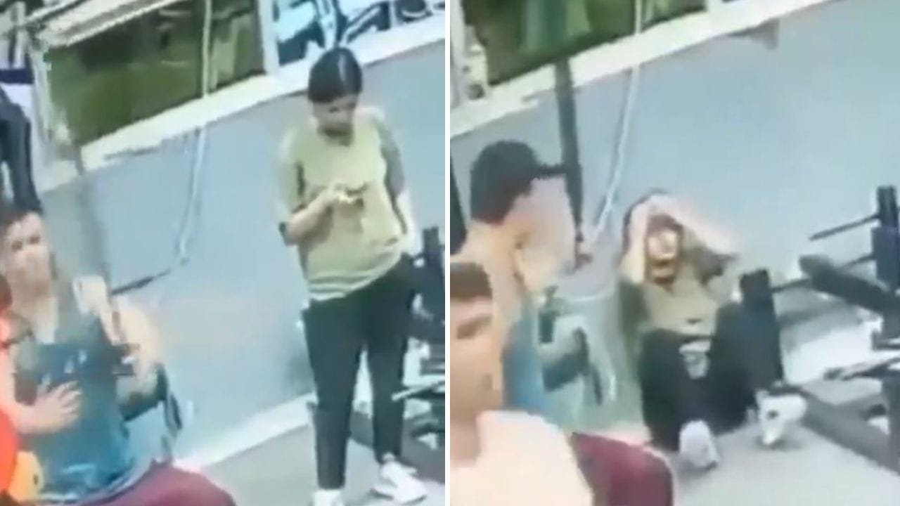 ਜੋ ਵੀਡੀਓ ਵਾਇਰਲ ਹੋ ਰਿਹਾ ਹੈ, ਉਸ ਵਿਚ ਦੇਖਿਆ ਜਾ ਰਿਹਾ ਹੈ ਕਿ ਇਕ ਵਿਅਕਤੀ ਚੇਸਟ ਬਟਰਫਲਾਈ ਮਸ਼ੀਨ ‘ਤੇ ਬੈਠ ਕੇ ਐਕਸਰਸਾਈਜ਼ ਕਰ ਰਿਹਾ ਹੈ। ਉਸਦੇ ਖੱਬੇ ਪਾਸੇ ਇੱਕ ਕੁੜੀ ਖੜੀ ਹੈ ਜੋ ਆਪਣੇ ਫੋਨ ਵਿੱਚ ਬਿਜ਼ੀ ਹੈ। ਕੁਝ ਸਮਾਂ ਕਸਰਤ ਕਰਨ ਤੋਂ ਬਾਅਦ, ਵਿਅਕਤੀ ਰੁਕ ਜਾਂਦਾ ਹੈ ਅਤੇ ਕੁਝ ਸਕਿੰਟਾਂ ਬਾਅਦ ਉਹ ਮਸ਼ੀਨ ਦਾ ਹੈਂਡਲ ਛੱਡ ਦਿੰਦਾ ਹੈ। ਜਿਵੇਂ ਹੀ ਆਦਮੀ ਹੈਂਡਲ ਛੱਡਦਾ ਹੈ, ਇਹ ਸਿੱਧਾ ਉਸ ਕੁੜੀ ਦੇ ਚਿਹਰੇ ‘ਤੇ ਜਾ ਲੱਗਦਾ ਹੈ ਜੋ ਨੇੜੇ ਖੜ੍ਹੀ ਹੋ ਕੇ ਫੋਨ ਦਾ ਇਸਤੇਮਾਲ ਕਰ ਰਹੀ ਸੀ। ਮਸ਼ੀਨ ਦਾ ਹੈਂਡਲ ਲੱਗਦਿਆ ਹੀ ਕੁੜੀ ਹੇਠਾਂ ਡਿੱਗ ਪੈਂਦੀ ਹੈ। ਜਿਵੇਂ ਹੀ ਔਰਤ ਹੇਠਾਂ ਡਿੱਗਦੀ ਹੈ, ਉਹ ਆਪਣਾ ਸਿਰ ਫੜ ਕੇ ਬੈਠ ਜਾਂਦੀ ਹੈ।