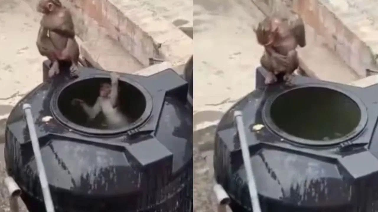 ਇਸ ਦ੍ਰਿਸ਼ ਨੂੰ ਦੇਖ ਕੇ ਅਜਿਹਾ ਲੱਗਦਾ ਹੈ ਜਿਵੇਂ ਬਾਂਦਰਾਂ ਨੇ ਮਿਲ ਕੇ ਕੋਈ ਯੋਜਨਾ ਬਣਾਈ ਹੋਵੇ ਅਤੇ ਫਿਰ ਇਸ ਟੈਂਕੀ ‘ਤੇ ਕਬਜ਼ਾ ਕਰ ਲਿਆ ਹੋਵੇ। ਤੇਜ਼ ਧੁੱਪ ਅਤੇ ਝੁਲਸਾ ਦੇਣ ਵਾਲੀ ਗਰਮੀ ਦੇ ਵਿਚਕਾਰ ਇਹ ਨਜ਼ਾਰਾ ਨਾ ਸਿਰਫ਼ ਹੈਰਾਨ ਕਰਨ ਵਾਲਾ ਹੈ, ਸਗੋਂ ਇਹ ਵੀ ਦਿਖਾਉਂਦਾ ਹੈ ਕਿ ਜਾਨਵਰ ਵੀ ਹਾਲਾਤ ਅਨੁਸਾਰ ਖ਼ੁਦ ਨੂੰ ਢਾਲਣਾ ਚੰਗੀ ਤਰ੍ਹਾਂ ਜਾਣਦੇ ਹਨ। ਵੀਡੀਓ ਇਹ ਵੀ ਸਾਫ਼ ਤੌਰ ‘ਤੇ ਦੱਸਦੀ ਹੈ ਕਿ ਗਰਮੀ ਦਾ ਅਸਰ ਸਿਰਫ਼ ਇਨਸਾਨਾਂ ਤੱਕ ਸੀਮਤ ਨਹੀਂ ਹੈ, ਸਗੋਂ ਪਸ਼ੂ-ਪੰਛੀ ਵੀ ਇਸ ਤੋਂ ਉਨੇ ਹੀ ਪ੍ਰਭਾਵਿਤ ਹੁੰਦੇ ਹਨ।