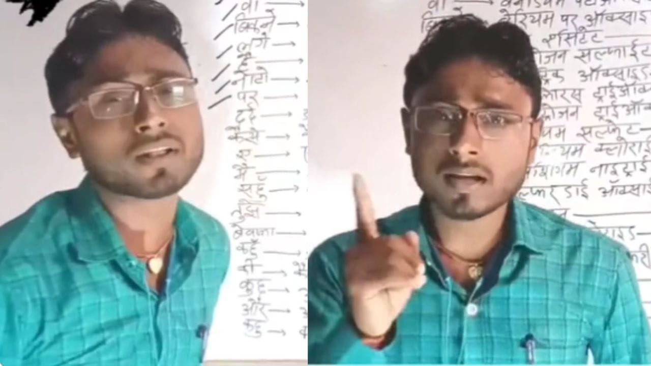 ਹਾਲ ‘ਚ ਸੋਸ਼ਲ ਮੀਡੀਆ (Social Media) ‘ਤੇ ਇੱਕ ਕੈਮਿਸ਼ਟਰੀ ਦੇ ਅਧਿਆਪਕ ਦਾ ਵੀਡੀਓ ਬੜੀ ਤੇਜ਼ੀ ਨਾਲ ਵਾਇਰਲ ਹੋ ਰਿਹਾ ਹੈ। ਇਸ ਵੀਡੀਓ ‘ਚ ਇੱਕ ਅਧਿਆਪਕ ਭੋਜਪੁਰੀ ਗੀਤਾਂ ਰਾਹੀਂ ਸਟੂਡੈਂਟਸ ਨੂੰ ਕੈਮਿਸਟਰੀ ਦੇ ਫਾਰਮੂਲੇ ਯਾਦ ਕਰਵਾ ਰਹੇ ਹਨ। ਇਸ ਵੀਡੀਓ ਨੂੰ ਵੇਖਣ ਤੋਂ ਬਾਅਦ ਲੋਕ ਇਸ ਅਧਿਆਪਕ ਦੇ ਇਸ ਢੰਗ ਨੂੰ ਕਾਫੀ ਪਸੰਦ ਕਰ ਰਹੇ ਹਨ। ਟਵੀਟਰ ‘ਤੇ ਅਪਲੋਡ ਇਸ 38 ਸੈਕਿੰਡ ਦੀ ਵੀਡੀਓ ਨੂੰ ਵੇਖਣ ਤੋਂ ਬਾਅਦ ਹਰ ਕੋਈ ਕਹਿ ਰਿਹਾ ਹੈ ਕਿ ਅਜਿਹੇ ਅਧਿਆਪਕ ਹੋਣੇ ਬਹੁਤ ਜ਼ਰੂਰੀ ਹਨ।