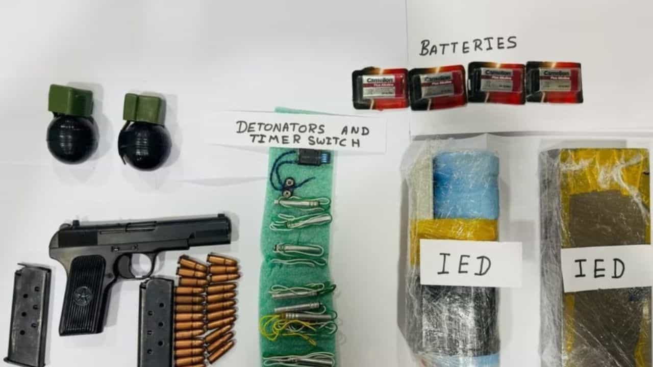 ਪੁਲਿਸ ਨੇ ਮੁਲਜ਼ਮਾਂ ਕੋਲੋਂ 2 ਆਈਈਡੀ, 2 ਹੈਂਡ ਗ੍ਰਨੇਡ,1 ਪਿਸਤੌਲ, 2 ਮੈਗਜ਼ੀਨ, 24 ਕਾਰਤੂਸ, 1 ਟਾਈਮਰ ਸਵਿੱਚ, 8 ਡੈਟੋਨੇਟਰ ਅਤੇ 4 ਬੈਟਰੀਆਂ ਬਰਾਮਦ ਕੀਤੀਆਂ ਹਨ। ਪੁਲਿਸ ਨੇ ਮੁਲਜ਼ਮਾਂ ਨੂੰ ਅਦਾਲਤ ਵਿੱਚ ਪੇਸ਼ ਕੀਤਾ ਗਿਆ ਹੈ। ਮੁਲਜ਼ਮ ਪੰਜਾਬ ਚ 4 ਅੱਤਵਾਦੀ ਵਾਰਦਾਤਾਂ ਨੂੰ ਅੰਜਾਮ ਦੇਣ ਦੀ ਪਲਾਨਿੰਗ ਚੱਲ ਰਹੀ ਸੀ।