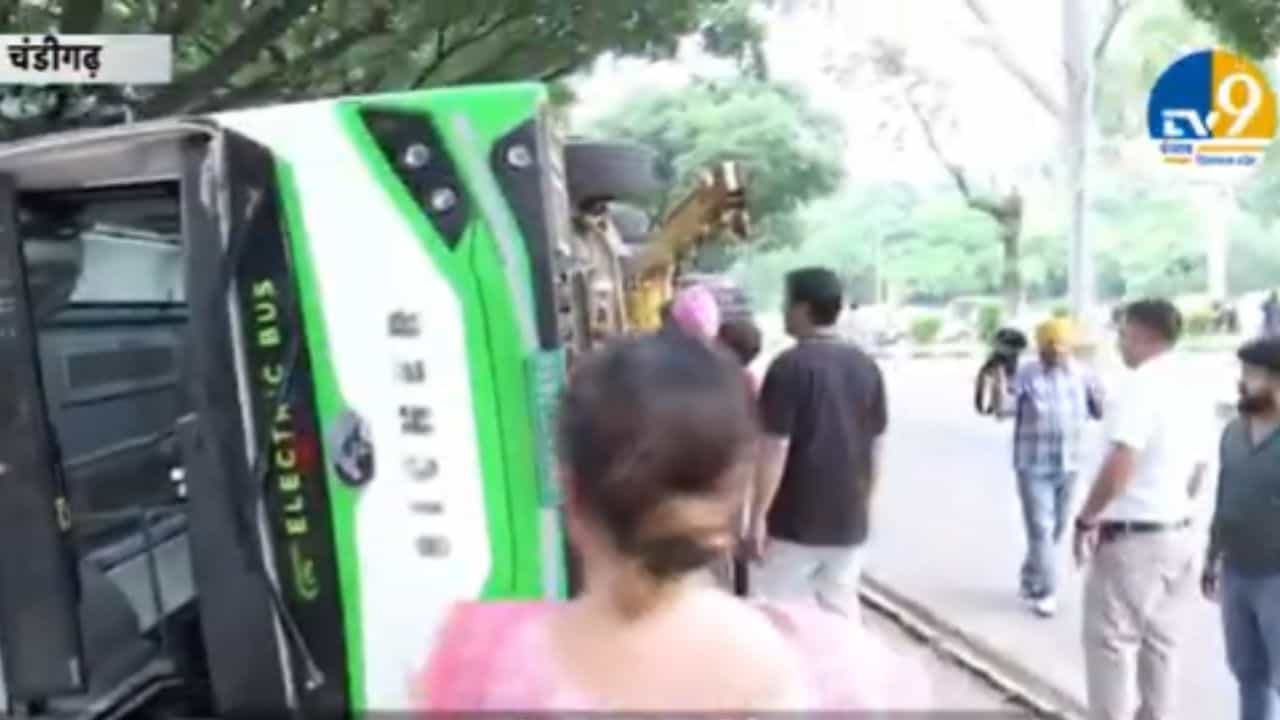 ਚੰਡੀਗੜ੍ਹ ਦੇ ਸੈਕਟਰ 17 ਵਿੱਚ ਸੜਕ ਦੇ ਵਿਚਕਾਰ ਪਲਟੀ ਯਾਤਰੀਆਂ ਨਾਲ ਭਰੀ ਸੀਟੀਯੂ ਦੀ ਬੱਸ, ਵੇਖੋ ਗ੍ਰਾਉਂਡ ਰਿਪੋਰਟ