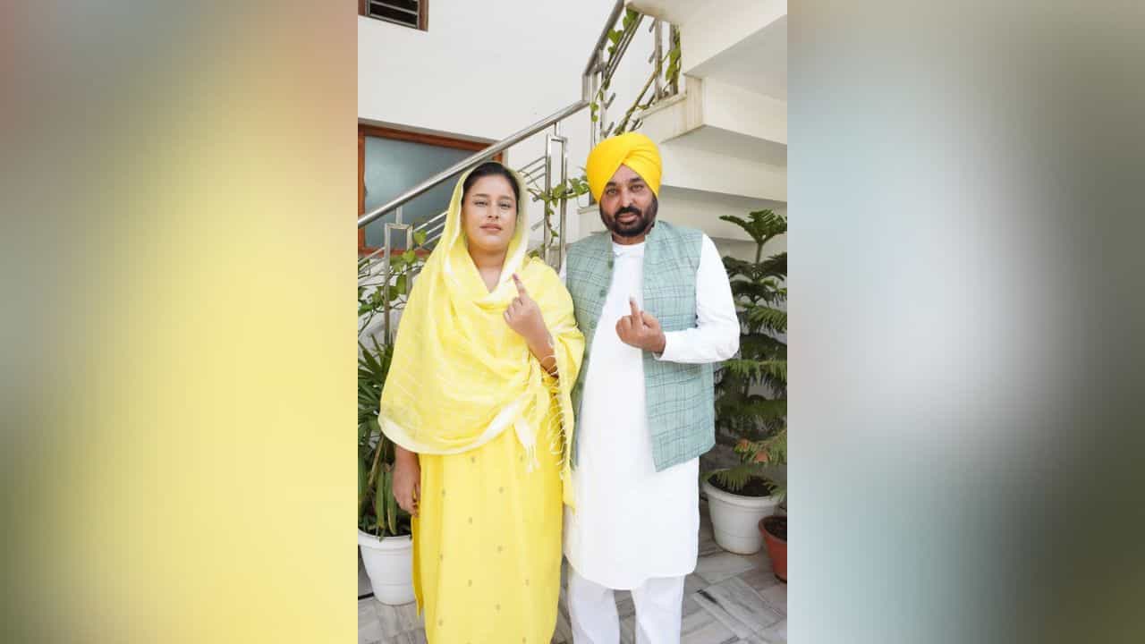 CM ਭਗਵੰਤ ਮਾਨ ਨੇ ਪਤਨੀ ਗੁਰਪ੍ਰੀਤ ਕੌਰ ਨਾਲ ਭੁਗਤਾਈ ਵੋਟ, ਲੋਕਾਂ ਨੂੰ ਹੱਕ ਦਾ ਇਸਤੇਮਾਲ ਕਰਨ ਦੀ ਕੀਤੀ ਅਪੀਲ