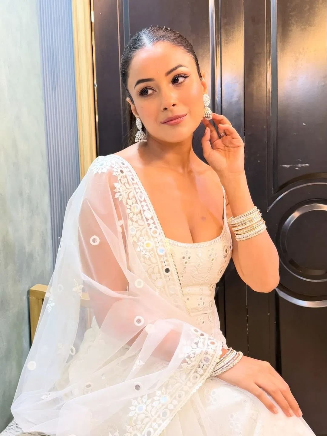ਸ਼ਹਿਨਾਜ ਗਿਲ ਨੇ ਵਾਇਟ ਸ਼ਰਟ ਦੇ ਨਾਲ ਸਿਲਵਰ ਗਲਿਟਰ ਮਿਨੀ ਸਕਰਟ ਪਾਇਆ ਹੋਇਆ ਹੈ। ਜਿਸ ਵਿਚ ਸਲਿਟ ਵੀ ਦਿੱਤੀ ਗਈ ਹੈ। ਅਦਾਕਾਰਾਂ ਨੇ ਇਸ ਦੇ ਨਾਲ ਬਲੈਕ ਕਲਰ ਦੀ ਸਟ੍ਰੈਪੀ ਹੀਲਸ ਵਿਅਰ ਕੀ ਕੀਤੀ ਹੋਈ ਹੈ। ਉਨ੍ਹਾਂ ਦਾ ਇਹ ਲੁੱਕ Boss Lady ਵਾਲਾ ਹੈ।
